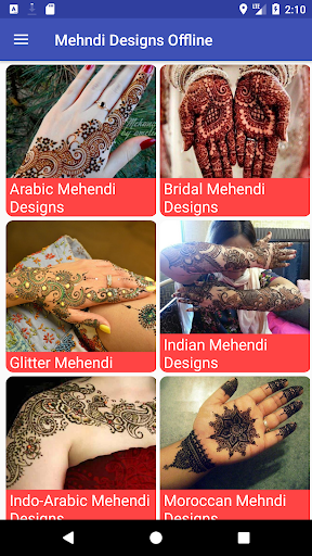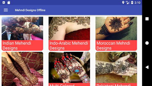 List of categories in Mehndi Designs Offline app are