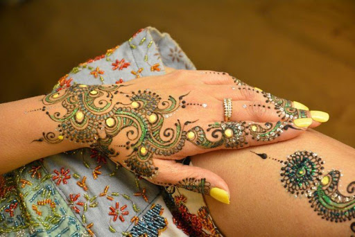 > Multi Colored Mehendi Designs