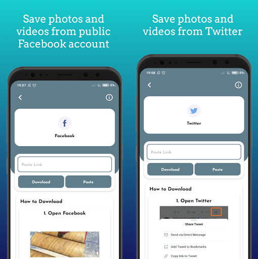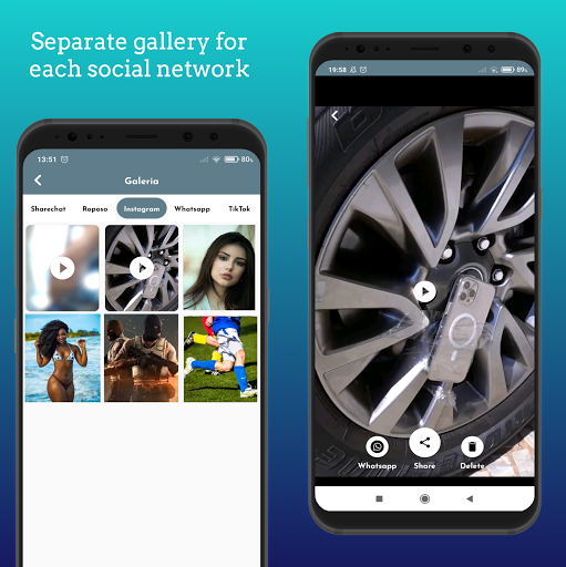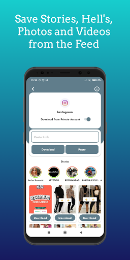😀 The application allows media downloads from the most popular social networks to the device itself, for viewing when offline or to share them on your own social network.