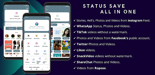 😍 Status Save - All in One is indispensable for anyone who wants to save Stories, Status, Images and Videos from Instagram, WhatsApp, TikTok, Facebook, Twitter, Likee, SnackVideo, ShareChat and Roposo.