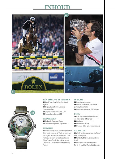 0024 Horloges is het meest opvallende magazine in Europa over de fascinerende wereld van haute horlogerie. Het zeer luxueus en groots uitgegeven horlogemagazine staat vol met nieuwe modellen van toonaangevende topmerken, achtergrondverhalen en diepte-interviews met ontwerpers en horlogemakers. Wie bij de tijd wil blijven, leest 0024 Horloges (Nederlandse taal).