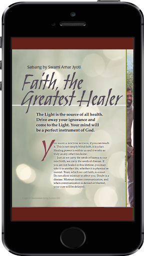 In each issue you will find a Satsang (spiritual discourse) of Swami Amar Jyoti, along with enlightening articles on consciousness, spiritual practices, prayer and meditation, wisdom teachings, science and spirituality, sacred ecology, personal journeys and healing, plus reviews of spiritual cinema, books, audio and DVDs. Recent authors include HH the Dalai Lama, Michael A. Singer, Eckhart Tolle, Bill McKibben, Rabbi Shefa Gold, Brother David Steindl-Rast, L.D. Thompson, Nicole Grace, Amit Goswami PhD, Karen Wyatt MD, and others.