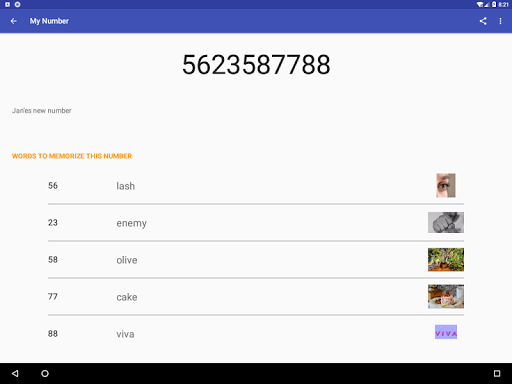 This memory training app is one of the best mnemonic Major System apps available on the Android platform today. It is highly customizable. You can use images to assist you in memorizing numbers. Its most distinguishing and convenient feature lets you to memorize your own long numbers by automatically converting them into their representing words.