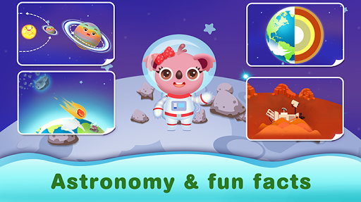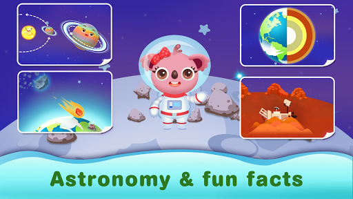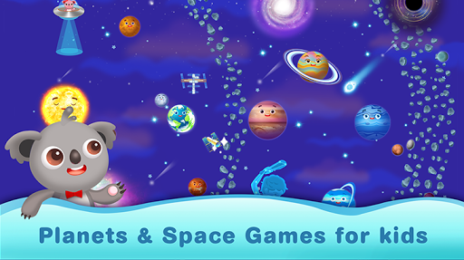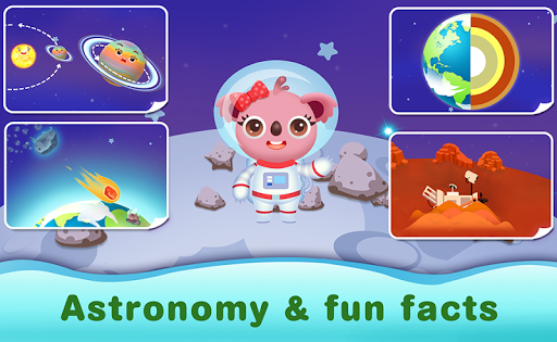Explore space & the solar system with koala. Kids can learn all about space: the sun, mercury, Venus, the earth, earth’s satellite the moon, Mars, Jupiter, Saturn, Uranus, Neptune, space station, Space Telescope, comet, the dwarf planets-- Pluto, Ceres, Haumea, Makemake, Eris, asteroid belt, kuiper belt, galaxies, 23 constellations, black hole, nebula, and more.