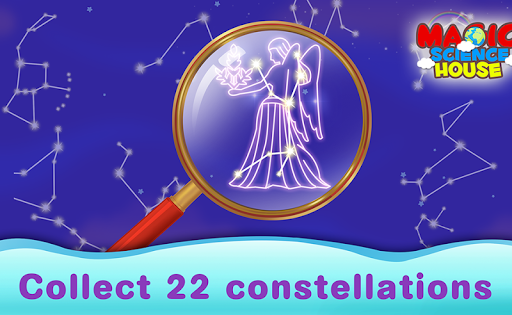 23 constellations in this app are Aquila, Canis major, Cassiopeia, Cygnus, Lyra, Orion, Ursa major, Ursa minor, Perseus, Hercules, Andromeda, Aquarius, Pisces, Aries, Taurus, Gemini, Cancer, Leo, Virgo, Libra, Scorpio, Sagittarius, Capricorn.