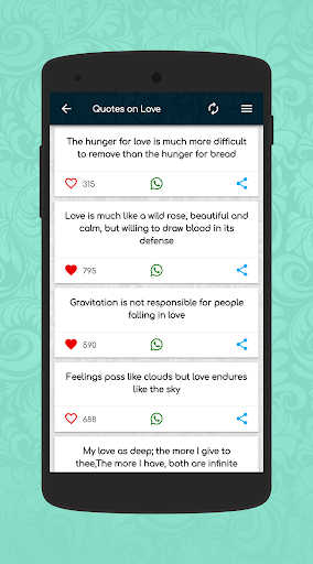 ✔ Collect your favorite quotes in your favorite list and also from there you can manage your favorite list
