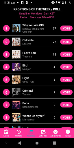 Take your favorite kpop music with you, wherever you go, vote for your favorite songs, support your artists and listen to special programs.