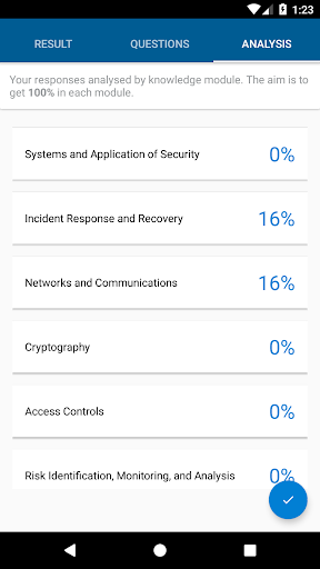 Install the app now and keep track of your progress until you validate all knowledge sectors of the SSCP exam.