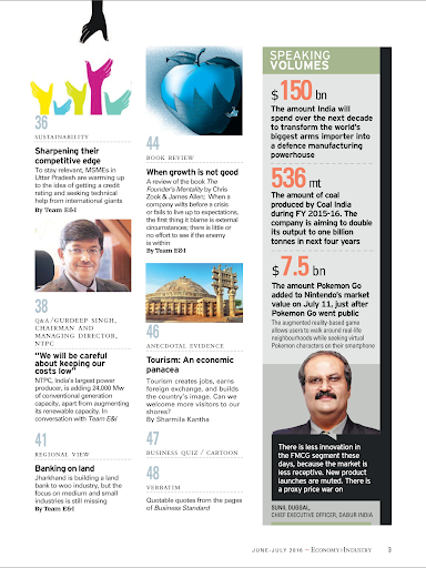 Economy & Industry comes in – to present thoughtful analysis on economy and industry trends to enable enterprises to be ahead of the curve. Conceptualised as a thought-leader on industry, economy, industrial competitiveness and management issues. The idea is to build the image of the Indian industry as a credible, responsible and proactive partner in national development. Presenting insightful analysis of economic issues. Highlighting industry perspectives on key policy matters Offering strategies for meeting future challenges Ideating on cutting-edge competitiveness space Innovating on quality, sustainability, governance and globalisation.