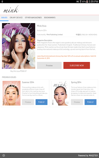 Mink magazine Asia is the region’s new quarterly deluxe makeup and skincare publication for Asian women. Published in English, Traditional Chinese, Korean and Japanese, Mink reaches out to a truly Asian female readership. Each issue features leading international makeup artists and edgy, up-and-coming talent from the hot spots of the global fashion world. Mink is an essential curated resource for Asian woman seeking expert advice and practical guidance on a range of looks, from radiant natural-looking skin and contouring to stunning day and evening looks, as well as edgy, avant-garde catwalk looks. Mink is based in Hong Kong and distributed to an ever-growing readership in key locations in Asia and beyond.