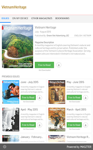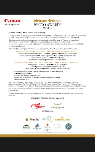 A monthly magazine in English covering Vietnam's natural and cultural heritage and its conservation. Published under the auspices of the Vietnam Cultural Heritage Association. Serving readers who are interested in Vietnam's rich natural and cultural treasure. Clear and concise stories written by professional journalists, reporters as well as renowned researchers, culture experts and artists provide readers with multi-faceted and valuable approaches on Vietnam's land, people and its cultural evolution. Photos and paintings on the landscapes, nature reserve, historical sites, architectural and sculptural structures, cultural activities, folk and modern art from around the country as well as Vietnamese people’s daily life scenes. Maps and directions are also available to serve readers who love travelling.