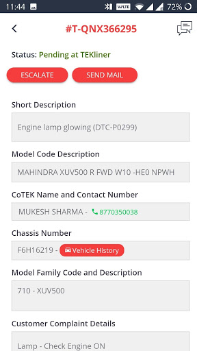 CoTEKs can connect with Engineers at Mahindra Hotline Assistance Centers (TEKline) through this app and request for diagnostic assistance. This app can also send video/audio files directly from the