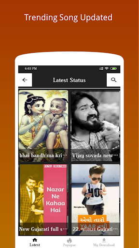 Gujarati Screen Video Status Lyrical Status application which have large collection of best full screen video status to share your own social side story.