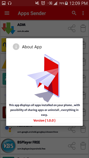 This app displays all apps installed on your phone , with possibility of sharing apps or uninstall , everything in easy.