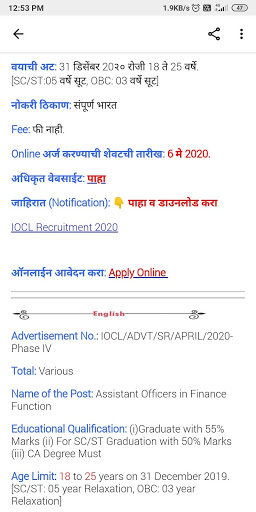 In this application, the student will get jobs for 7th, 8th, 10th, 12th Pass, Diploma, ITI, Graduate, Ph.D., Engineers, Doctors and other degree holders.