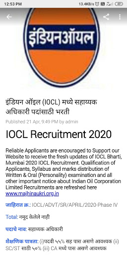 This 'Majhi Naukri Maharashtra - MajhiNaukri.org.in' Application is all about the most advanced and upcoming jobs / Sarkari Naukri Bharti. Students can use our application to get the latest job Information under the following categories.