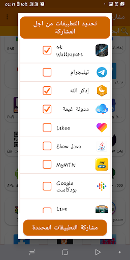 مشاركة التطبيقات (APK)