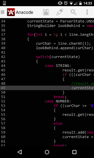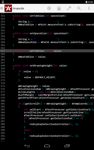 Anacode introduces a new code edit model for smart devices allowing for faster and much easier writing and editing of source code then ever before. Copying, pasting, deleting (and other functions that are used a lot during coding) of lines, words or selections of code is a single tap/click away and speeds up your coding time dramatically.