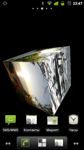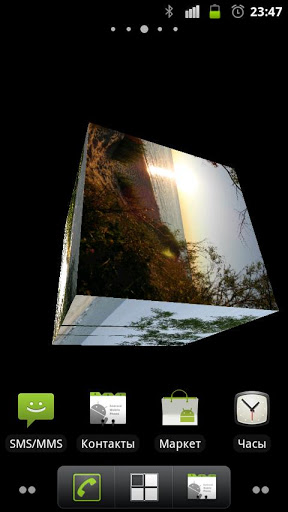 Nice rotating cube on your screen, with pictures or photos from phone gallery (camera and others) and pictures from Picasa web collection.