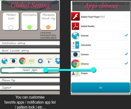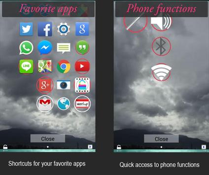 - Quick access to phone functions (Sound, Flash light, Wifi, Bluetooth).