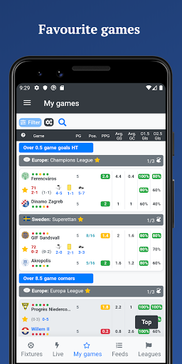 Favourite leagues - Follow leagues that you want. Select your favourite leagues and see them on top of the feed.