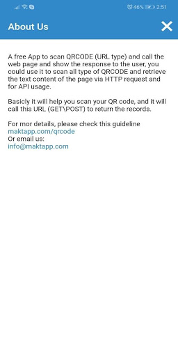 A free App to scan QRCODE (URL type) and call the web page and show the response to the user, you could use it to scan all type of QRCODE and retrieve the text content of the page via HTTP request and for API usage.