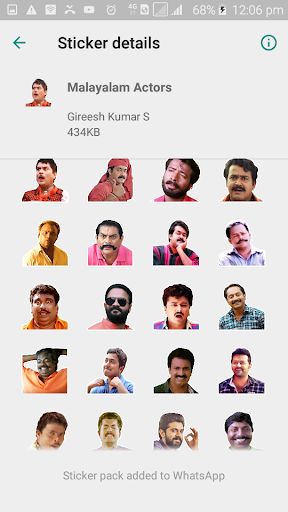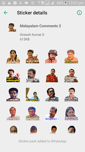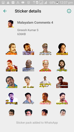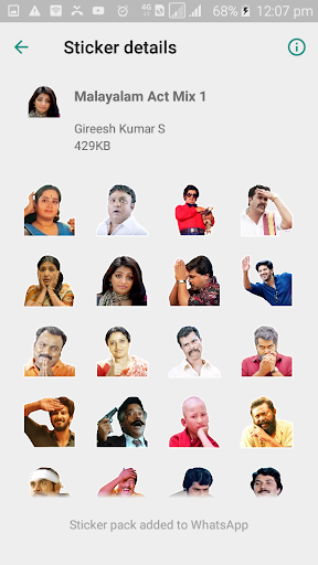 This sticker pack contains stickers of your favourite Malayalam movie actors to make your WhatsApp chats quite funny and interesting. In case of an error where you are the owner of an an image, please mail to gireeshkorani@gmail.com