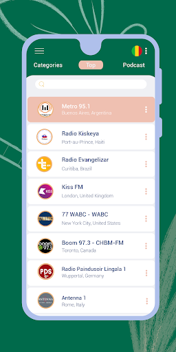 • ''World'' – listen to Android radio stations from all over the world.