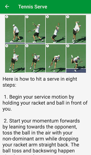 100 % Guarantee that this App Will Boost Your Tennis Skills. Learn to Play Tennis Forehand, Backhand, Serve, Grips, Volley and Slice Stroke. Awesome Tennis Drills and Professional Premium Tips to Give You a Lot of Confidence in Your Game. Pictorial Representations of Pros to Explain the Dynamics of Each Stroke.