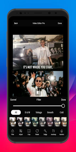 - Photo Filters : more than 200 filters like B&W, light, colored, warm, funny, legacy, smooth, vintage… for the image to become colorful and stylish with adjust the opacity of the filter.