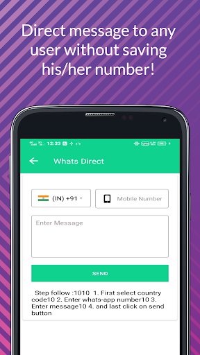 -Direct message to any user without saving his/her number!