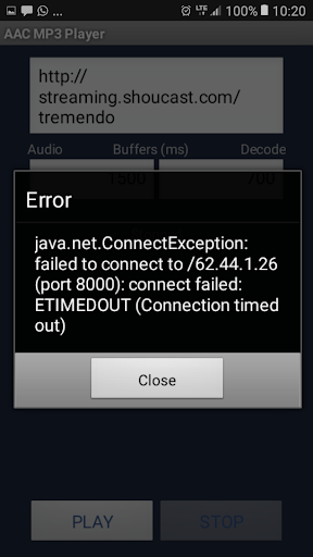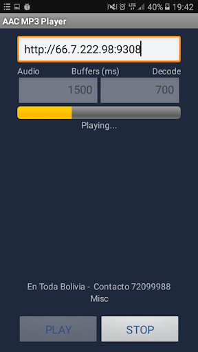 Simple reproductor de streaming en formato mp3 o aac con libreria nativa de google opensource para fines de testeo para servidores streaming.