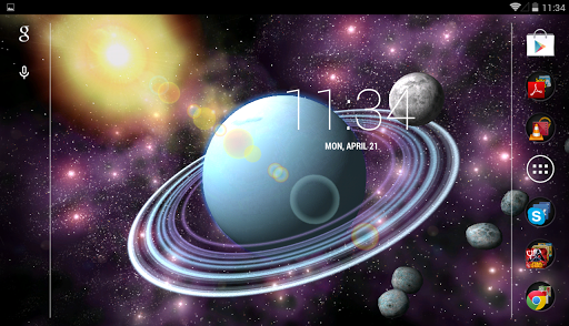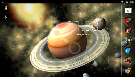 Drawn in detail, animated planets, moons and rings, unique stellar nebulae, bright sun playing with flares, asteroids and shooting stars create a truly live, colorful 3D image that will not leave you indifferent.