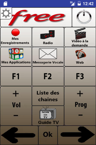 Télécommande Freebox player révolution (V6) utilisable depuis votre smartphone ou votre tablette Android (Compatible Donut, Eclair, Froyo, Honeycomb, Ice Cream Sandwich, Jelly Bean, KitKat). Trois écrans accessibles par défillement tactile. Accédez aux fonctions principales sur le premier écran, aux fonctions avancées sur le deuxième et aux fonctions programmées sur le troisième.