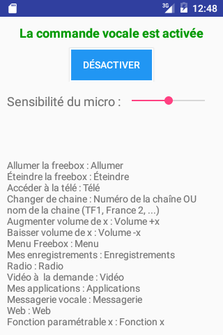 *** Pour lancer la commande vocale, il faut effectuer un son suffisamment fort au niveau du téléphone (un claquement de mains par exemple) ***