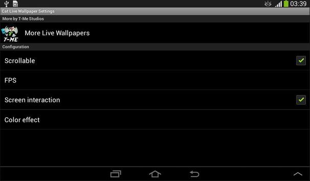 Note. You can also open this Live Wallpaper by going to Home -> Menu -> Wallpapers -> Live Wallpapers and choosing Cat Live Wallpaper.