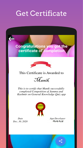 Play any Quiz over a wide range of categories and get a certificate of completion after completing Quiz.