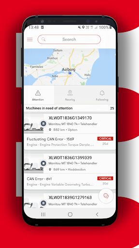- Overview of all machines needing actions ranked by criticality level (due maintenance, errors code on eligible machines, damage reports).