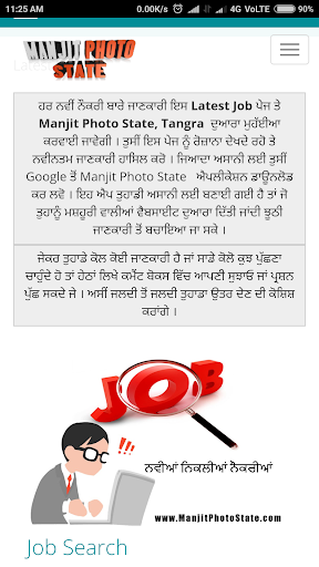 Manjit Photo State provide Job Search Engine. You can easily find your job according to your qualification. The main concept is that all the information is provided in native languages (Punjabi). Any Punjabi person can read all information regarding recruitment in Punjabi.