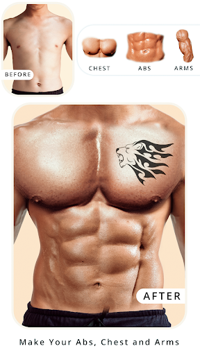Man Photo editor is an abs photo editor with Men mustache editor and six pack editor abs app for the best abs editing photos. Get six packs, eight packs instantly without going for gym using this abs app for the men body styles. Use our chest photo editor or chest maker app for to get an handsome and macho look.