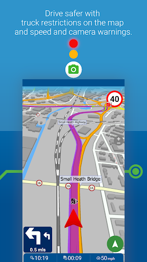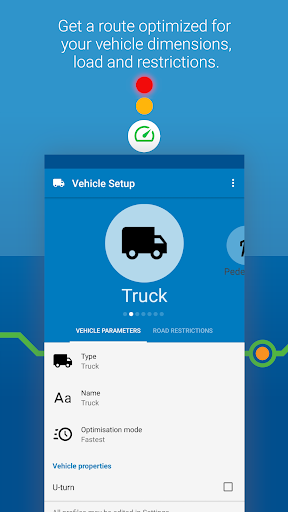Reliable truck navigation for professional large vehicle drivers with offline TomTom Truck maps and routing optimized for your vehicle parameters. Real-time traffic information, alternative routes, waypoint optimization, speed limit and camera warnings, POIs and more.
