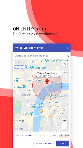 With free Wake Me There - GPS alarm app you will never go past your destination or miss your date. This simple free GPS location alarm app for Android will also help you to keep within the mandated distance from home or any other position on the map. Easily set a perimeter.