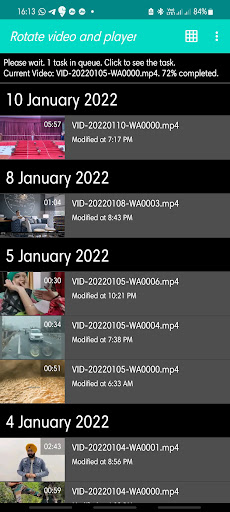 Instructions:- Video will added in queue after click on desired video. Rotate operation depend on video length and quality, so this operation takes time. Please be patience. Video process one by one from the queue. After process complete video will start playing automatically.
