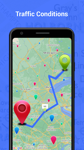 mobile location & Map Direction route Finder App traffic alerts finder maps, driving directions to help drivers to plan the optional route on their destination. All the time you knows what's going on the road with the GPS Route Finder & driving app about traffic updates, if traffic is heavy on your way, the Live GPS Traffic Navigation will change it to save your time.