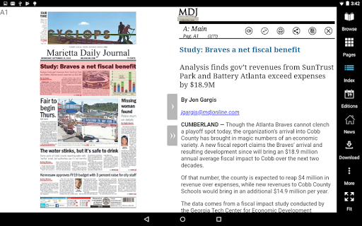 The Marietta Daily Journal has been Cobb County’s news source since 1866. The MDJ electronic edition app lets subscribers read their favorite paper on an Android Device with all the stories, ads and photos shown exactly as it appears in print.