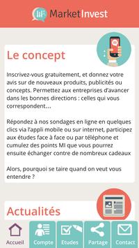 Le but est de recueillir votre avis sur de nouveaux produits, publicités ou concepts et permettre d’avancer dans les bonnes directions : celles qui vous correspondent… Inscrivez-vous gratuitement, rejoignez la communauté Market Invest et exprimez-vous sur des sujets qui vous intéressent (presse, mode, beauté, alimentation, voitures, politique…et bien d’autres thèmes encore !).