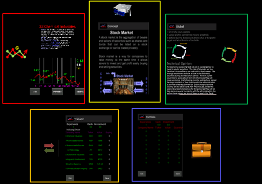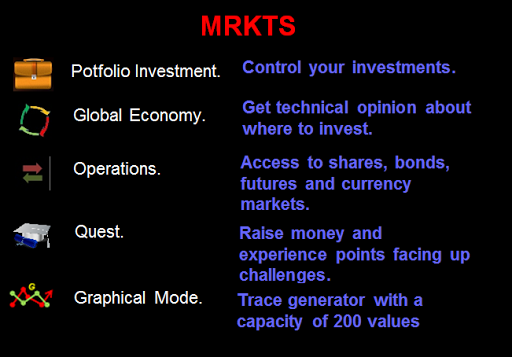 More than 70 companies grouped by economical areas acting as a real market, with values constantly changing according to economical factors. Bonds, futures and options markets.