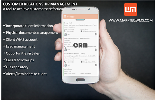 MARKTEQ WMS is a Business Management Application. Helps you to manage staff, clients, projects, leads, call/follow ups, meetings, events, sales, quotations, revenue generation, helpdesk. Its a app with all facility which you need to manage the business.