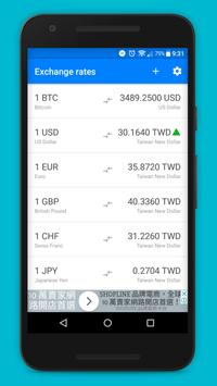 Exchange Rates Currency is a simple and easy-to-use currency & exchange rate toole. It supports 100 currencies including Bitcoin! It allows you to easily watching the currencies as well as search for a currency choice from the list. It provides answers to 2 decimal places for great accuracy and updates all exchange rates automatically.