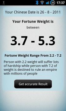 The birth year, month, day and time of each person determine their own weight of fortune. The weight has specific provisions of fortune. The minimum weight is 2.2 and maximum weight is 7.2. Person that born with 7.2 of fortune weight is destined to rule an empire with millions of people.